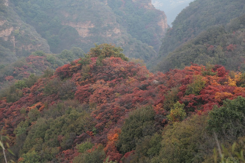漫山的黃櫨、五角楓將大山裝扮的五彩繽紛