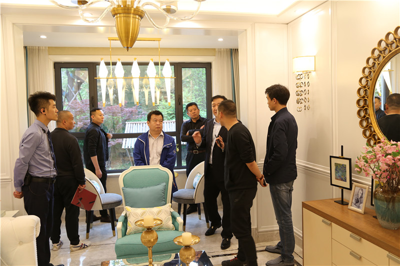在吳董的陪同下,視察領導一行先后參觀了月晟·天璽臺營銷中心以及樣板間,吳董就項目概況以及工程進度向視察領導進行了詳細匯報。