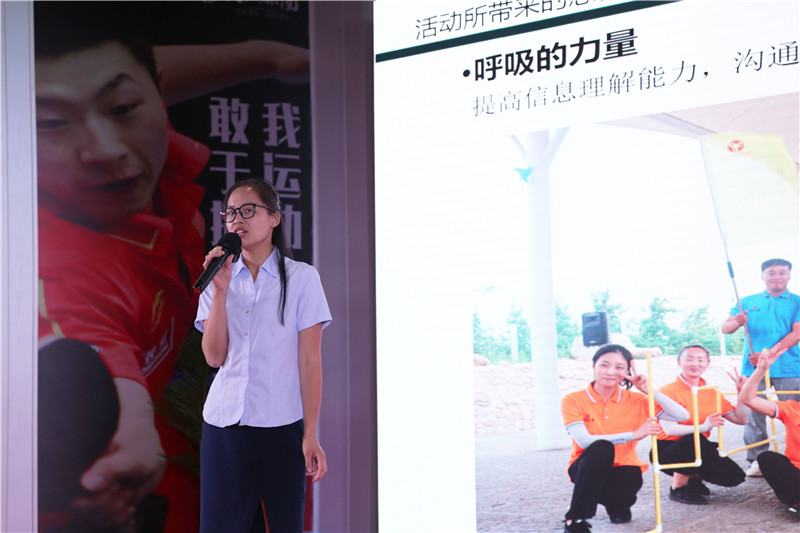 劉主任就拓展活動的目的、活動組織的提升和亮點、活動中所帶來的感悟以及活動中所出現的問題等方面進行了總結分享,并邀請月晟家人們上臺與大家一同分享活動感悟。