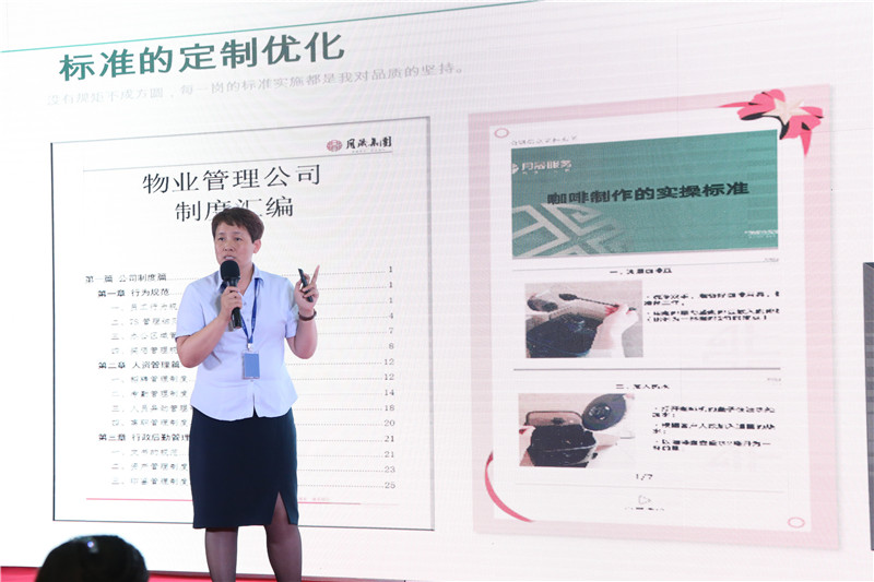 會議第二項,副總裁王志燕向大家詳細介紹月晟服務管理的提升以及發展前景。