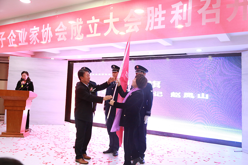 區(qū)委副書記趙鳳山向第一任會(huì)長授旗。