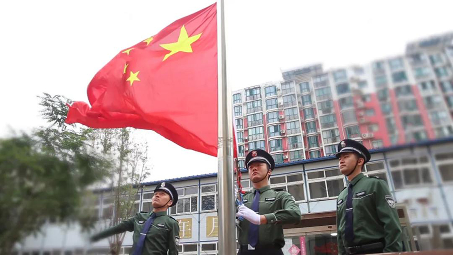清晨5:58,伴隨著慷慨激昂的《義勇軍進行曲》,五星紅旗冉冉升起。