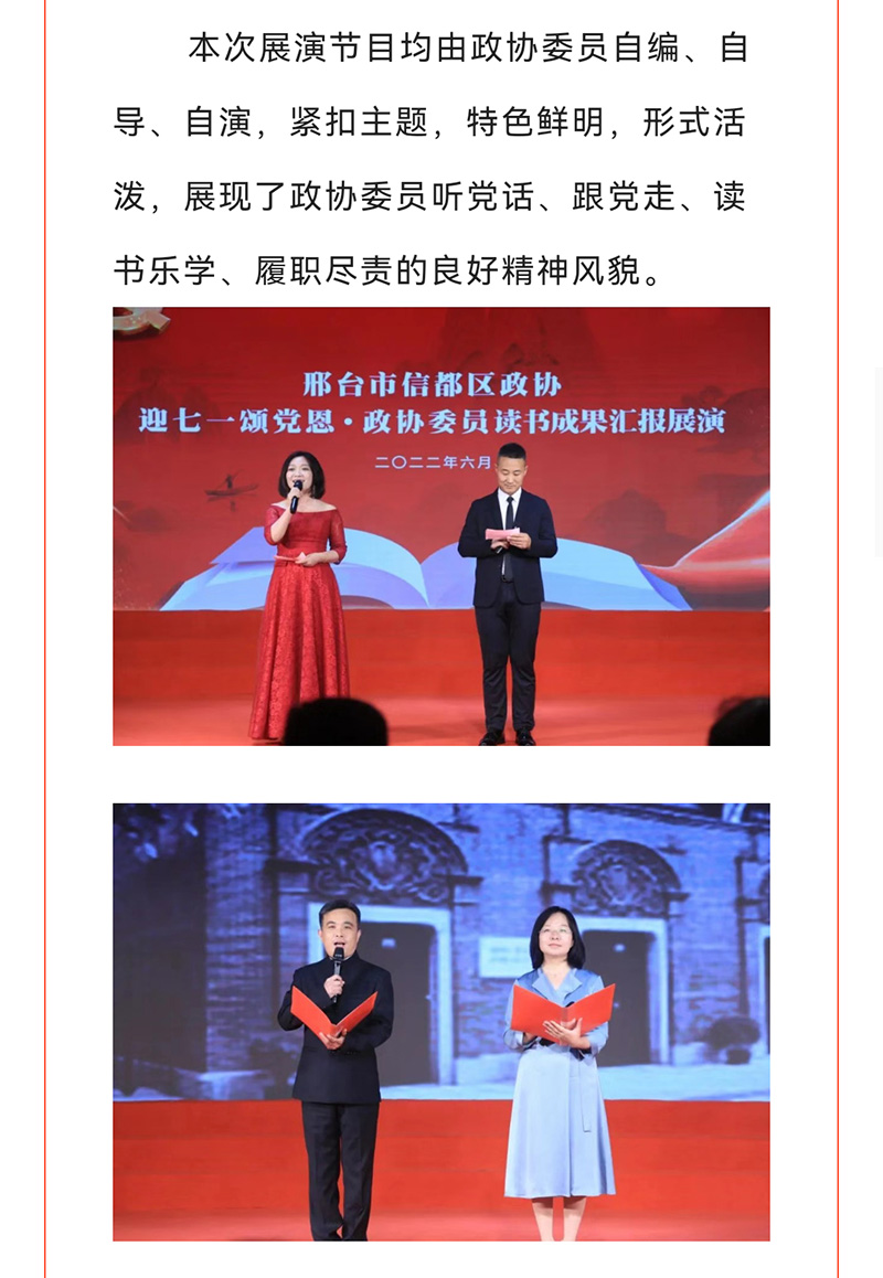 信都區政協“迎七一頌黨恩·政協委員讀書成果匯報展演”在月晟藝博會展中心圓滿舉行